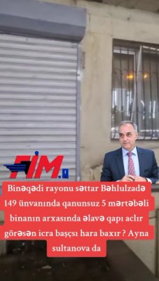 Binəqədi rayonu Səttar Bəhlulzadə 149 ünvanında qanunsuz 5 mərtəbəli binanın arxasında əlavə qapı açılır - Görəsən İcra başçısı hara baxır?